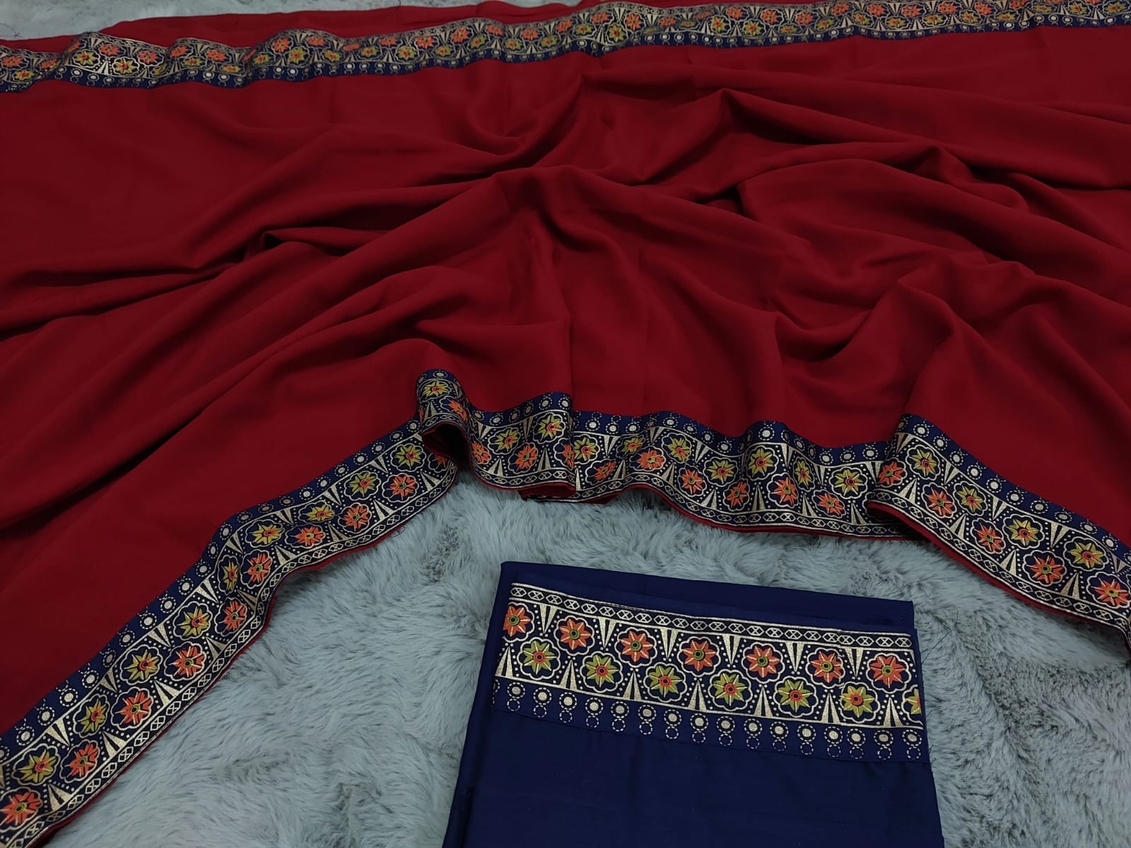 ☘️একটি মেরুন কালার জর্জেট শাড়ি